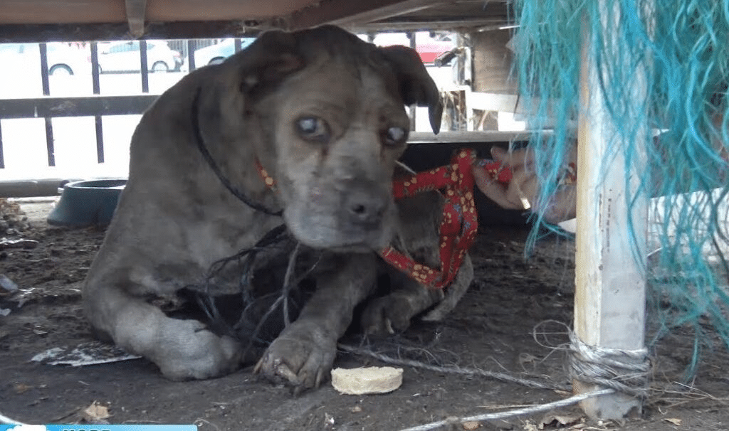 A junkyard employee noticed the motionless dog tucked beneath the metal container and immediately sensed something was wrong. As she approached, she realized Duncan wasn’t aggressive or frightened—just empty. She brought him food and water, and though he tried, he barely had the strength to respond.