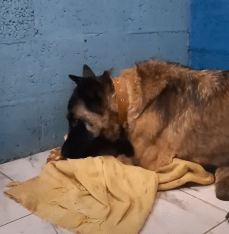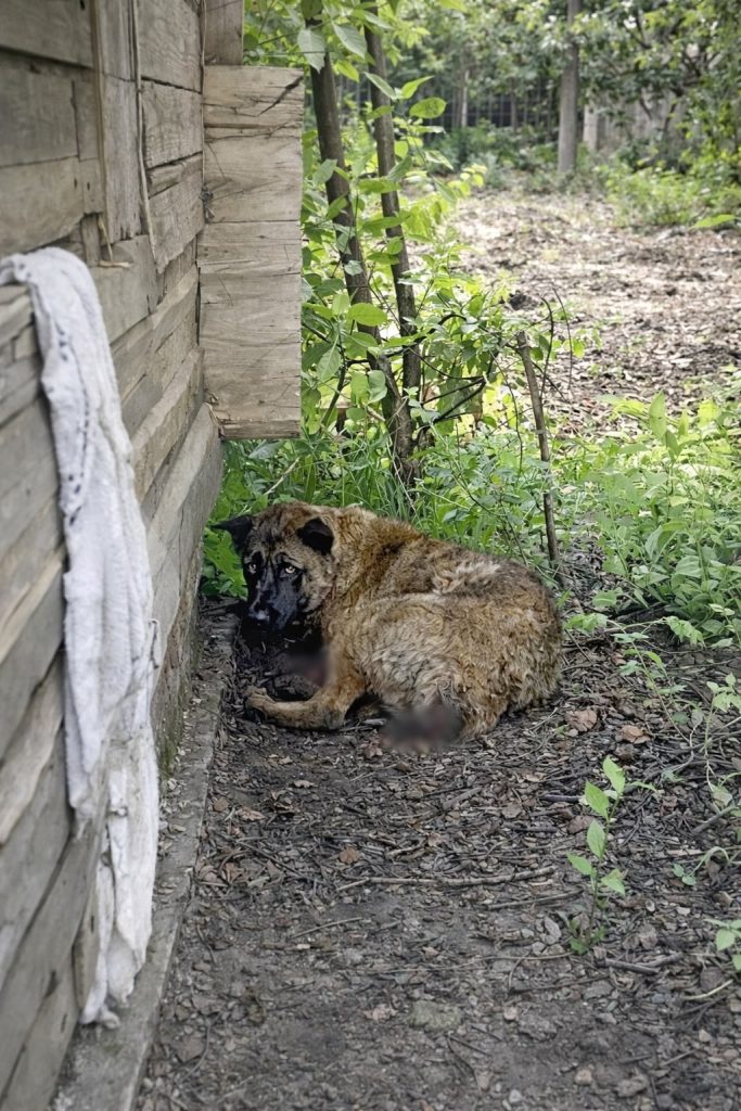 She was found at the very edge of exhaustion, quietly tucked into the corner of a stranger’s yard, as if she had chosen that spot for one last moment of rest. The dog, later named Akita, had once been strong and graceful. Now, she was barely recognizable. Days of neglect had left her weak, dehydrated, and unable to move on her own. Her body showed signs of severe injury and infection, and it was clear she had been suffering for far too long without help.