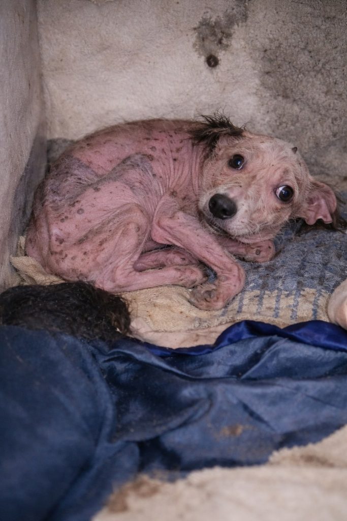 When Dobi was discovered, the world had already been unkind to him for far too long. He didn’t cry out for attention or try to defend himself. He didn’t have the strength. Instead, he pressed his small body into the furthest corner he could find, curling inward as if hoping to fade into the shadows. His frame was thin, weakened by illness and neglect, and every breath seemed careful, uncertain. Yet what stayed with everyone who saw him were his eyes. They were wide and heavy with fear, carrying the quiet weight of a soul that had endured more than it should have.