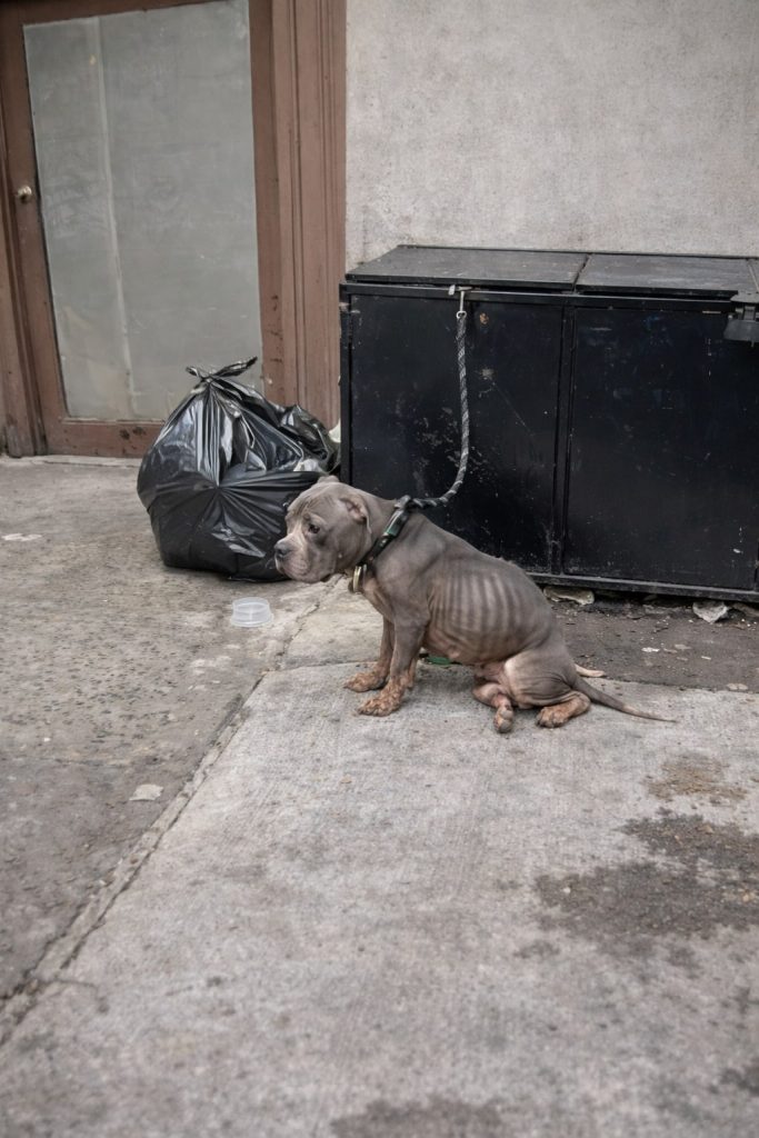 Weber was discovered tied to a dumpster, abandoned and barely clinging to life. His emaciated frame told a story of long-term neglect—fur matted with dirt, nails curled unnaturally, and skin marred by raw patches that hinted at past trauma. Every detail spoke of prolonged suffering, of a soul ignored and cast aside. Yet, even in this state, a flicker of hope lingered in his eyes.