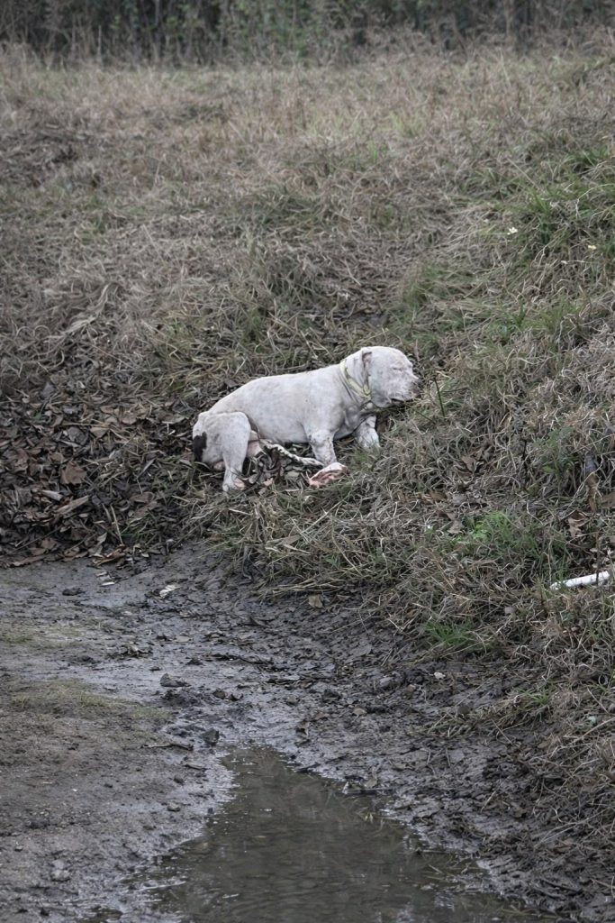 On the side of a bustling road, a small dog named Big Head was discovered in a scene that would tug at anyone’s heart. He lay beside his departed companion, refusing to leave, his loyalty unwavering even in the face of exhaustion. His body was thin, his fur infested with fleas, and every detail told a story of long-term neglect and struggle. Yet despite everything, he remained by his friend’s side, a living testament to devotion and the quiet strength that animals often embody.