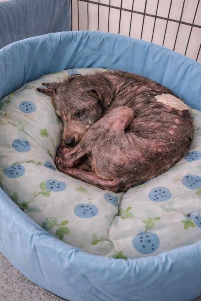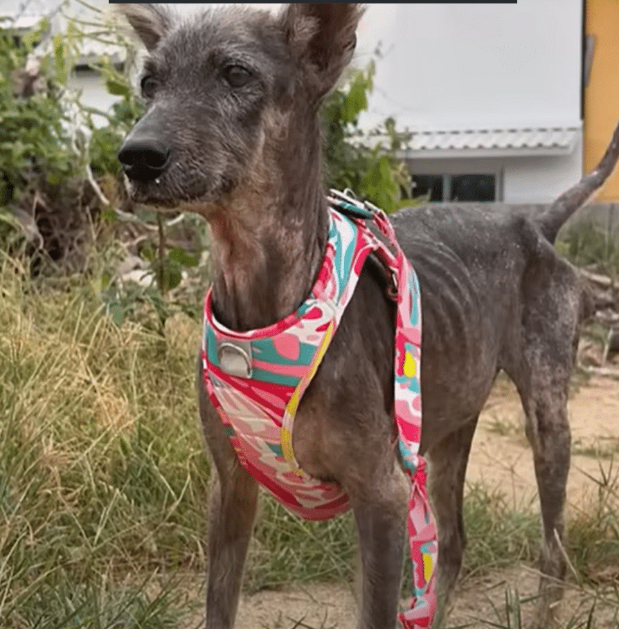 For nearly a decade, Sena lived a life defined by hardship and silence. When she was first discovered, her existence seemed to balance on the edge of survival. She wandered the streets as a fragile shadow of a dog, her body weakened by long-term hunger and ongoing skin problems that caused constant discomfort. Every step looked painful. Her ribs pressed sharply against thinning fur, her eyes appeared tired and distant, and her small frame carried the weight of years without care. She didn’t beg for attention or cry out for help. She simply existed, quietly enduring a world that had rarely shown her warmth.