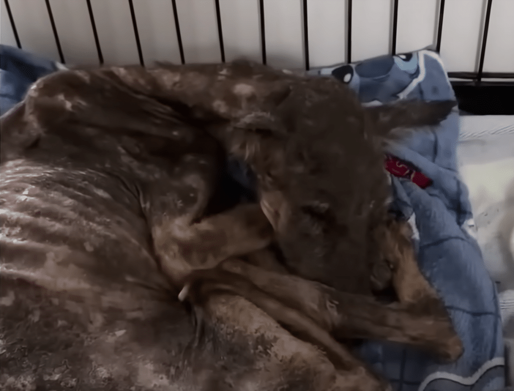 The people who found Sena knew they couldn’t walk away. They gently carried her to safety, wrapped her in soft blankets, and offered something she had never known before: consistency, patience, and care. The first nights were incredibly difficult. Sena whimpered quietly, her body trembling as if she was unsure whether this kindness was real. Her system, weakened by years without proper nourishment, struggled to handle food. Even small meals made her sick at first, and progress felt painfully slow.