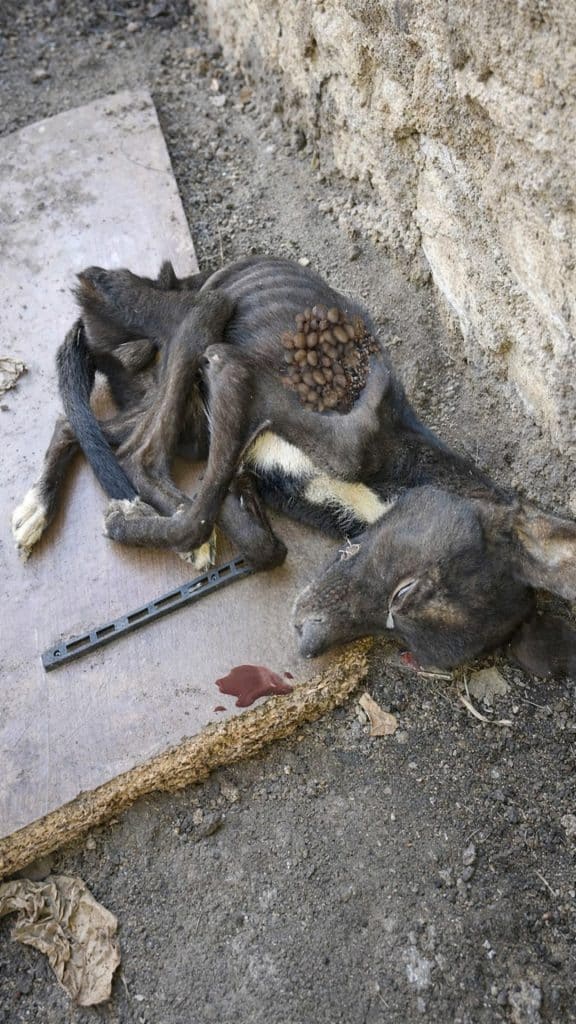 When the rescue team arrived, they were stunned by what they saw. The dog’s condition reflected weeks, possibly months, of neglect and hardship. Severe malnutrition had drained her strength, and the ticks covering her body had left her dangerously weak. The rescuers moved carefully, speaking softly as they lifted her and placed her into their vehicle. They knew that every moment mattered, and they headed straight for the rescue center to begin treatment.