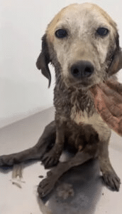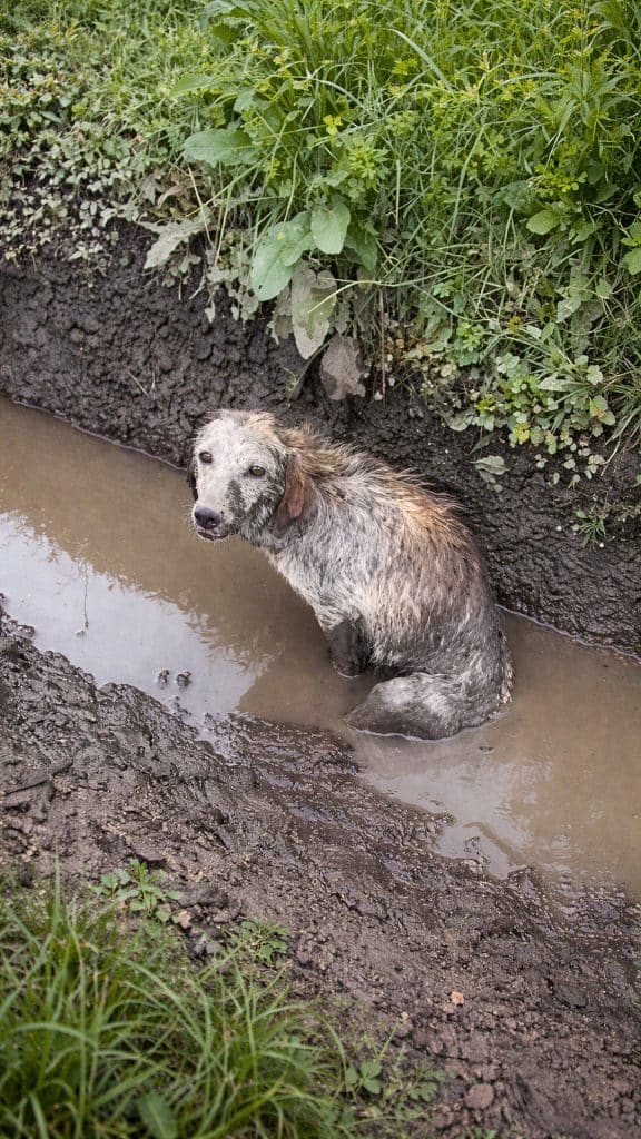 Lying at the bottom of the ditch was a dog, barely able to move. His body was caked in thick mud, and exhaustion was written all over his face. He looked frightened, confused, and completely helpless. It was clear he had been there for some time. The children didn’t hesitate. They ran home as fast as they could, telling their parents and neighbors what they had discovered.