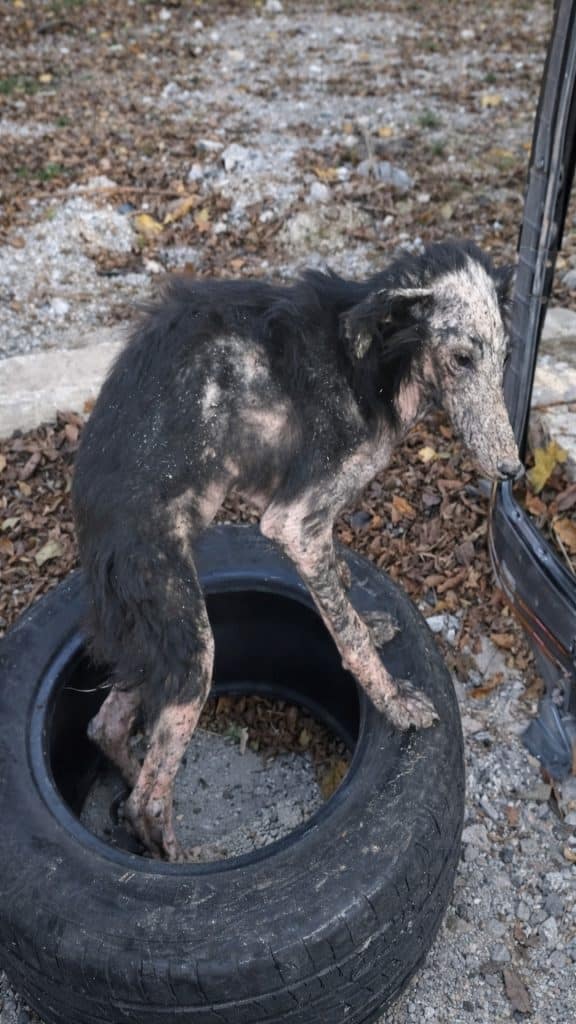 Despite everything, Neve remained gentle and quiet. She wasn’t aggressive or demanding. All she seemed to want was a safe place to rest, a bit of warmth, and enough food to ease her constant hunger. She wandered the neighborhood slowly, never straying too far from the tire that had become her refuge. Days passed, and while most people went on with their routines, Neve’s life hung in the balance. Her suffering might have continued unnoticed if not for one person who chose to act instead of walking by.