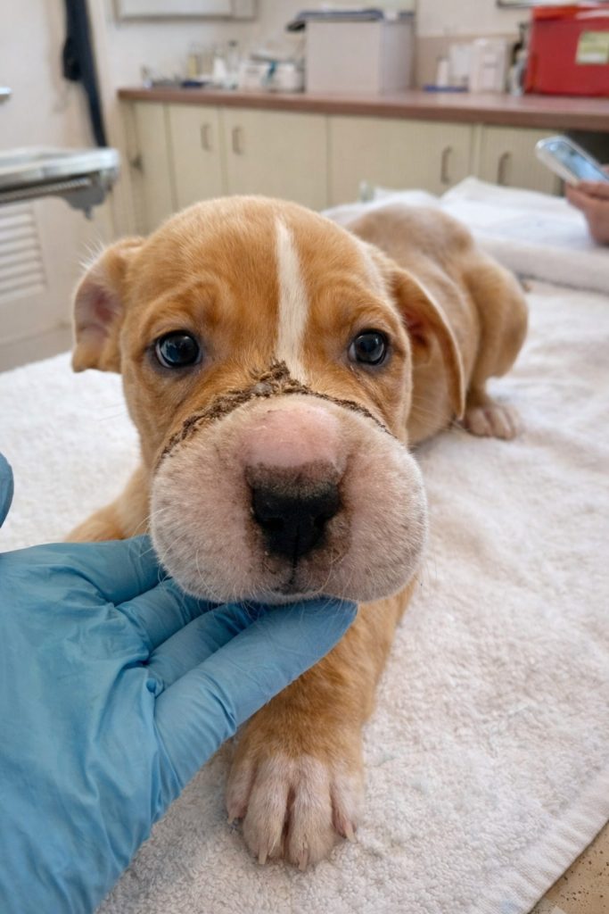 Tiffany’s ordeal began before she had even had a chance to understand the world around her. Someone deliberately tied a hairband tightly around her muzzle, an act meant to silence her natural instincts as a puppy. Over time, the band dug deeper, causing severe swelling and injury. By the time she was found, her face was badly inflamed, and the pain she endured was unimaginable. She was alone, frightened, and suffering in silence, until one compassionate individual noticed something was terribly wrong.