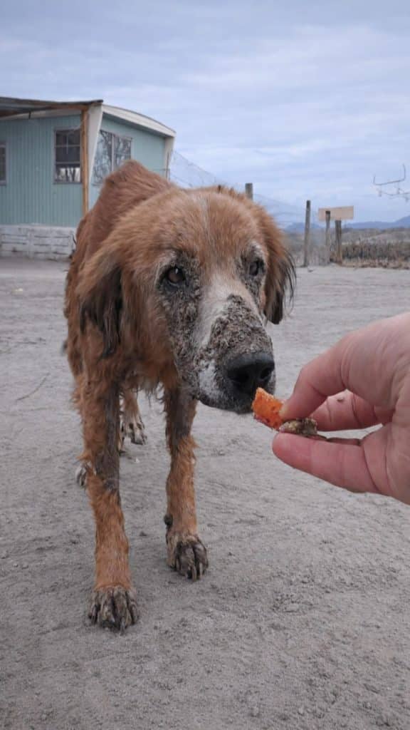 The man noticed him day after day. At first, he assumed the dog might belong to someone nearby, but as time passed, it became clear this wasn’t the case. The dog looked thin, his coat patchy and dull, his posture cautious but not fearful. Wanting to help, the man placed bowls of food and fresh water outside. The dog accepted the kindness gratefully, but it was obvious that meals alone weren’t enough. This dog needed medical care, safety, and a real home.