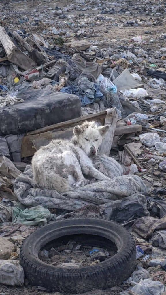 From the moment Miley was discovered, it was clear that life had not been kind to her. In a forgotten corner surrounded by discarded trash and broken remnants of everyday life, the small dog lay curled into herself, barely moving. Her thin frame pressed against the cold ground, and her tired eyes reflected exhaustion far beyond her years. Hunger, isolation, and prolonged neglect had drained nearly all the strength from her fragile body. To anyone passing by, it might have looked like she had simply given up. What no one could see yet was that her story was far from over.