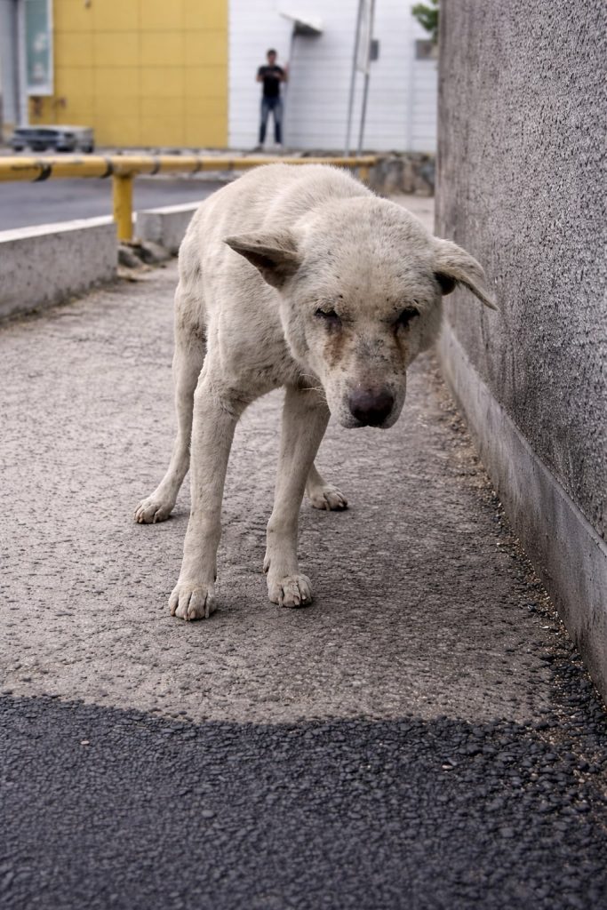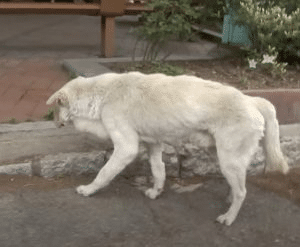 Concerned residents offered him food and water, hoping to draw him away from the gate. Sometimes he accepted a few bites, but often he turned his head aside. His appetite faded, and his body grew weaker. The strong, steady dog they remembered became thin and slow. His once-healthy coat dulled, and his movements lost their ease. More striking than his physical decline was the look in his eyes—an expression of quiet sorrow and confusion that spoke volumes.