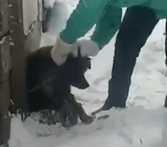 Unable to walk away, they tried to free him themselves. The leash, however, was old and rusted, locked tight despite their efforts. Realizing they needed help immediately, the husband hurried to a nearby store and returned with metal cutters. Without hesitation, he carefully cut through the leash. In that moment, Nakiyu was no longer restrained by the cold or confinement. For the first time in a long while, he was free.