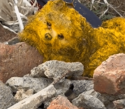 He didn’t bark or run. He just stood still, unsure of what to do next. His coat was a remarkable shade of yellow—bright, golden, and strangely beautiful, even though it was dulled by dirt and neglect. For a brief second, he looked almost unreal, like something out of a children’s book rather than a living creature trying to survive on his own. But that illusion faded quickly when I really looked at him.