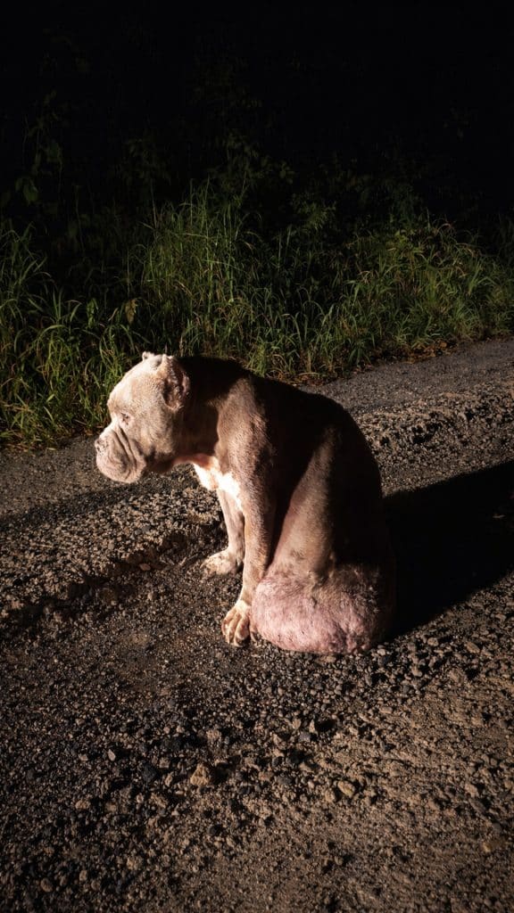 What most people didn’t notice at first glance was the reason she couldn’t move on. Magnolia carried an enormous burden—one that made even standing an effort. A large tumor weighed heavily on her body, limiting her ability to walk freely or escape danger. It left her exposed and dependent, unable to follow the cars she watched disappear down the road. Still, she stayed. Her patience spoke of trust that had not yet been broken, even after everything she had endured.
