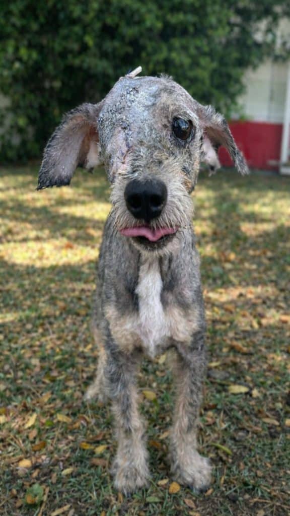 That hope was answered on an ordinary day that would change his life forever. During their routine rounds, rescuers noticed a small figure lying still on the pavement. At first glance, it was easy to assume the worst. But as they drew closer, Agustin lifted his head just enough to look at them. His single eye met theirs, tired yet alert. In that brief moment, they saw something powerful—not surrender, but trust. Even after everything he had endured, Agustin still believed in people.
