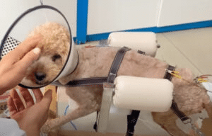 The first fitting was a moment filled with uncertainty. The dog looked unsure, unfamiliar with the strange new device. The man stayed close, offering reassurance and encouragement. Slowly, carefully, the dog tried to move. One step. Then another. And then something incredible happened.