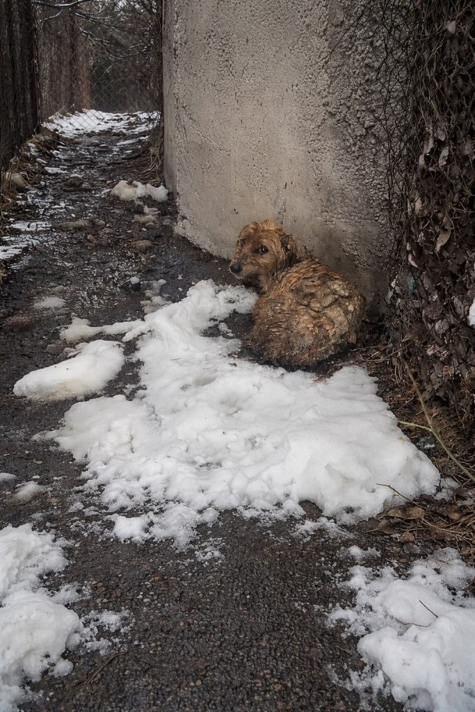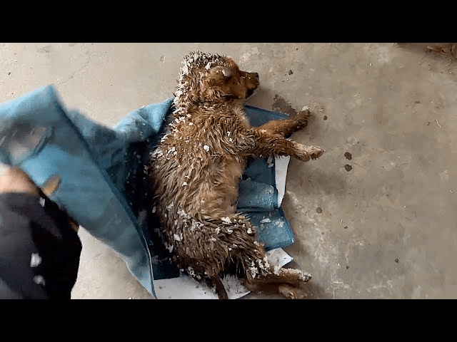 On a freezing winter morning, when the streets were quiet and the air cut like ice, a small dog lay still against the cold pavement. Snow clung to her fur, and her thin body shook from more than just the temperature. She was soaked, exhausted, and barely holding on. There was no strength left to cry for help, no energy to lift her head. Her eyes, wide and glassy, reflected fear, confusion, and a silent question no animal should ever have to ask—why was I left behind