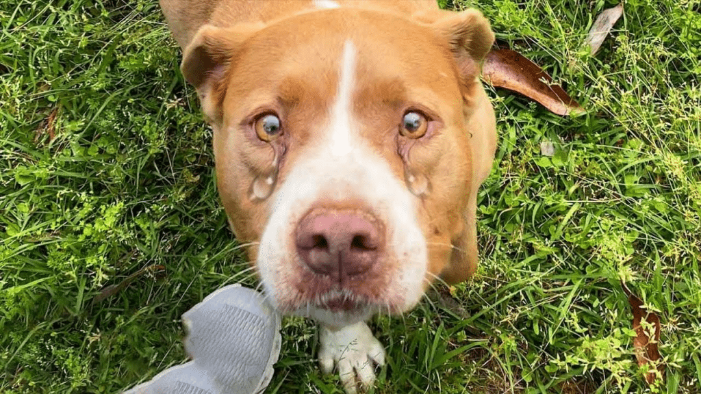 Behind the house, tucked near an old oak tree, they discovered a ten-year-old pit bull mix who looked up at them with cautious, hopeful eyes. Her name was Molly. A weathered doghouse sat beside her, and two faded bowls hinted at the life she once knew. Although she was chained, what truly held her wasn’t metal—it was heartbreak.