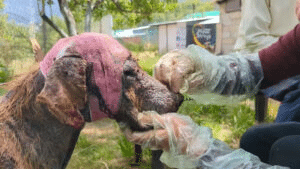 The team did not hesitate. Experience had taught them that moments like these define the very purpose of rescue work. Even when the road ahead looks uncertain, choosing compassion is never a mistake. Though the dog was understandably frightened and withdrawn, the rescuers approached with patience, soft voices, and steady hands. That first moment of connection—brief eye contact, a hesitant pause—was enough to convince them that this life was worth fighting for.