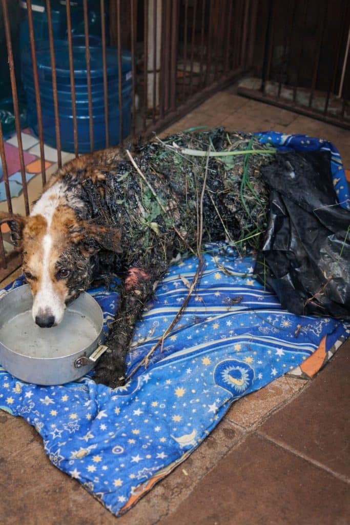 Left alone and covered in oil, Smally’s future looked bleak. Yet, even in that moment of despair, fate had not finished writing her story. A young woman named Maria happened to come across the scene and immediately realized something was wrong. She saw a frightened dog in clear distress and knew she couldn’t ignore it. Without hesitation, Maria stepped in, determined to give Smally a chance she had been denied.