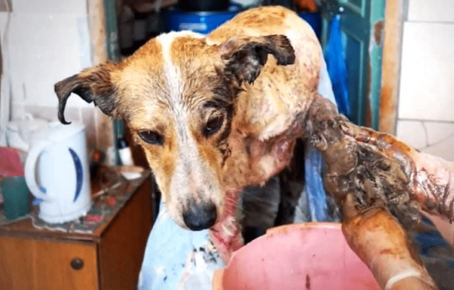 Smally’s life took a devastating turn when she fell into a pit filled with thick, heavy fuel oil. The dark, sticky substance clung to every part of her body, weighing her down and making even the smallest movement exhausting. In her panic, she struggled to free herself, but each attempt only caused the oil to spread further across her fur and skin. The situation was terrifying, and her strength quickly faded. What made it even more heartbreaking was the response of the person she depended on most. Instead of stepping in to help, her owner walked away, leaving Smally behind in a moment that changed her life forever.