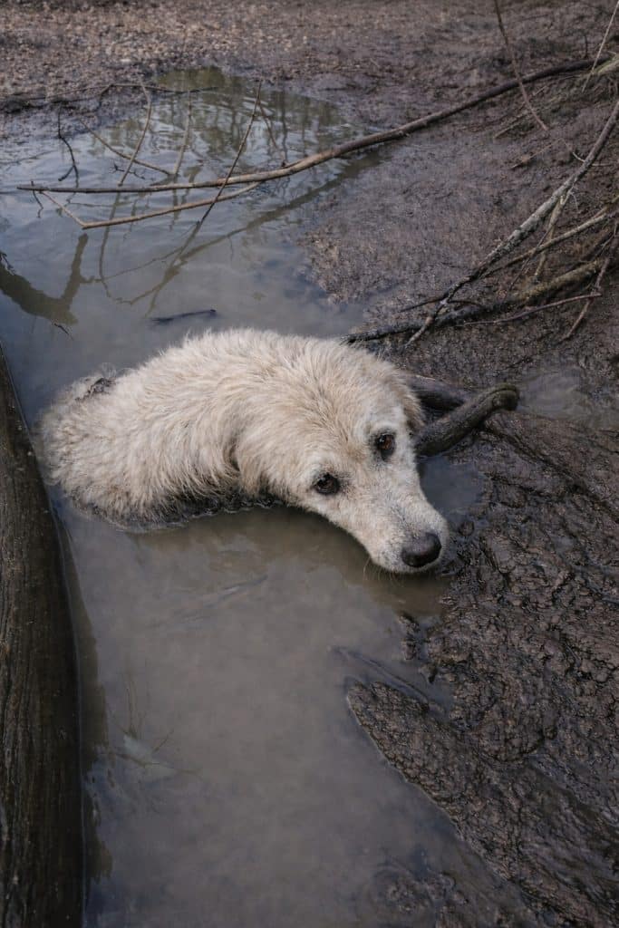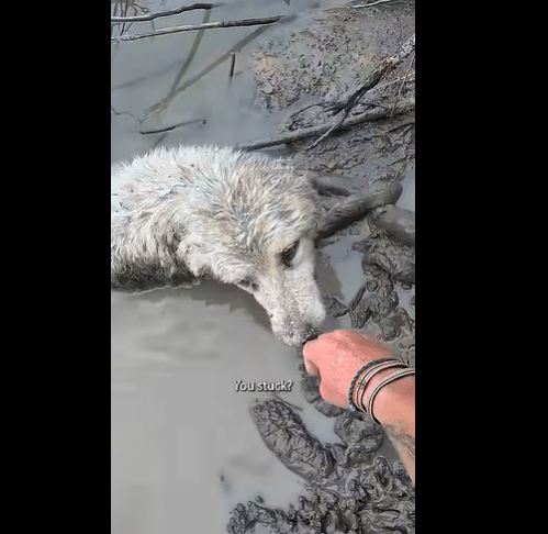 I don’t know how he ended up there. Maybe he slipped while exploring the shoreline. Maybe he followed a scent and stepped where the ground gave way. Or maybe he had been wandering for days and collapsed where his strength finally ran out. Whatever the reason, one thing was clear: he wasn’t getting out on his own.