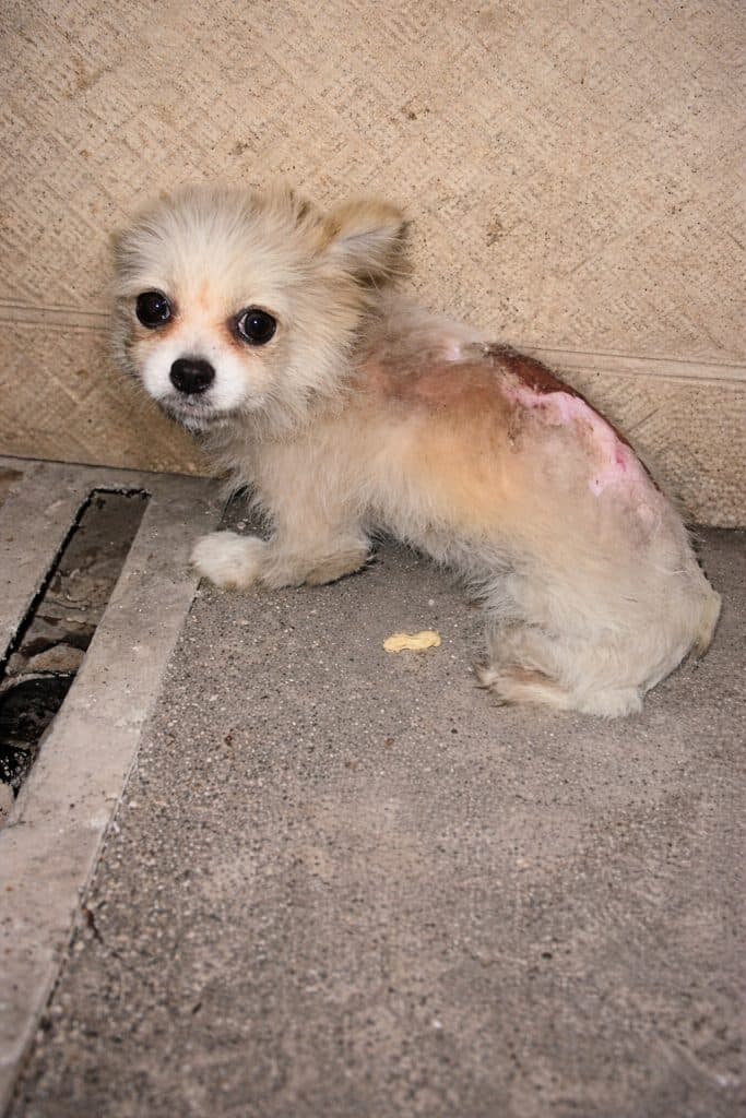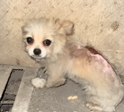 She reached out slowly, stopping just short of touching him, careful not to scare him. The puppy flinched, then relaxed again, as if he no longer had the energy to stay guarded. That was when her eyes filled with tears.