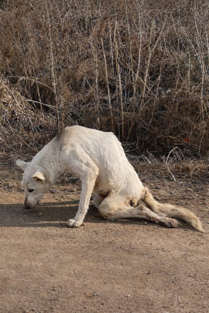 His spine had been badly injured, leaving his back legs unresponsive. Every attempt to move sent pain through his body. Still, driven by instinct, he dragged himself away from the road, inch by painful inch. There was no shelter waiting for him. No reassurance. Only the open street and the realization that his body no longer obeyed him.
