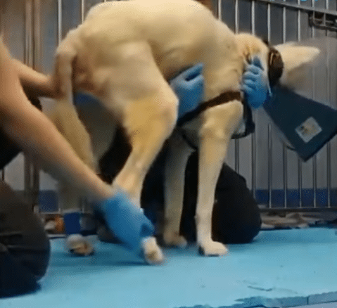 A rescuer noticed the stillness, recognized the quiet suffering, and saw more than a broken body. Galina was lifted gently, placed into safety, and taken to a veterinary clinic where the full extent of his injuries could finally be addressed.