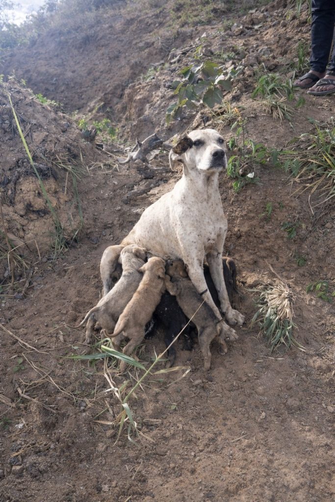 Her puppies were gone.