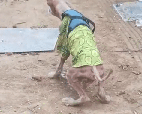 In a narrow alley rarely noticed by passersby, a stray dog spent his days moving between shadows. His body showed clear signs of a long, difficult time outdoors. His coat had thinned, his strength was fading, and his eyes carried a weariness that spoke of too many nights without safety or comfort.