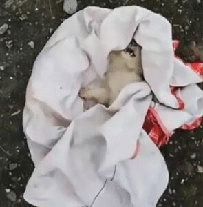 There was nothing Mr. Xiong could do for the dog that had already passed. But leaving the puppy there, alone and overwhelmed, felt impossible. He approached slowly, speaking softly. The puppy didn’t resist. Exhausted by loss, it allowed itself to be lifted and carried away from the road, leaving that painful moment behind for the first time.