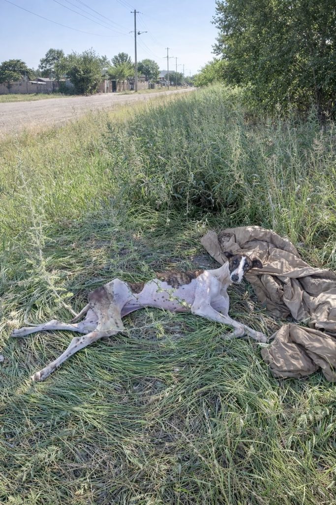 Her body showed the cost of being left behind. She was thin and fragile, her skin irritated from long exposure, her fur tangled and unkempt. The rusted chain around her neck told its own story—one of time passing without care or comfort. And yet, even in those conditions, something inside Sari endured. She waited. She listened. She hoped, quietly, that someone might notice.