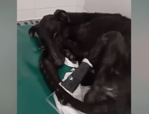 When Coco was finally discovered, the sight was difficult to forget. His body was dangerously thin, his ribs and spine sharply visible beneath his skin. His legs trembled as he tried to stand, and moments later, his strength gave out completely. He collapsed, exhausted, dehydrated, and overwhelmed. At that moment, Coco weighed far less than any healthy dog should, and his life was hanging by a thread.