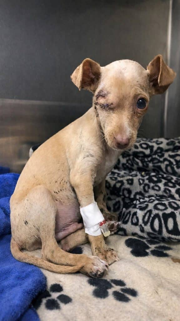 Help arrived quickly. Thor was rushed to a veterinary hospital where the focus was simple and urgent—stabilize him, comfort him, and give him a chance. His injuries were serious, and his tiny body had already endured more than it should have. Yet through it all, Thor remained calm, responding gently to the hands trying to save him.