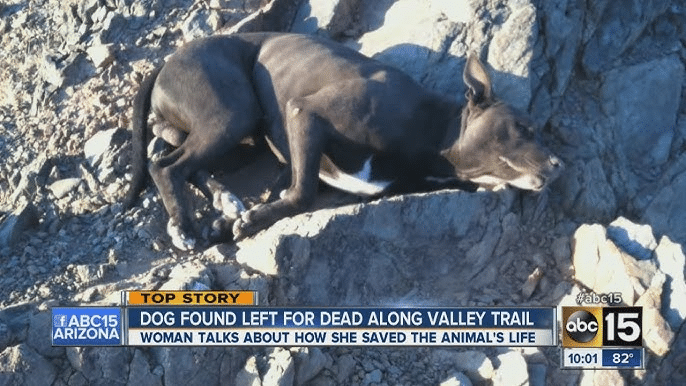It was an ordinary walk through a Phoenix neighborhood when everything changed. Under the harsh afternoon sun, a young dog lay motionless on a large rock, barely breathing. He was only about two years old, yet his body looked exhausted and fragile, as if he had already fought too many battles. Anyone passing by could have missed him. One woman didn’t.