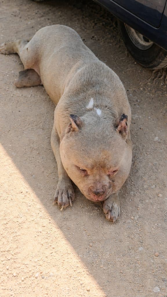 When someone finally noticed him, Rosita was lying still on the cold ground, barely able to lift his head. His ears were painfully inflamed, and swelling around his head made even the smallest movement difficult. He didn’t cry out or ask for attention. He simply waited—hoping, in the way animals do, that someone might finally stop.