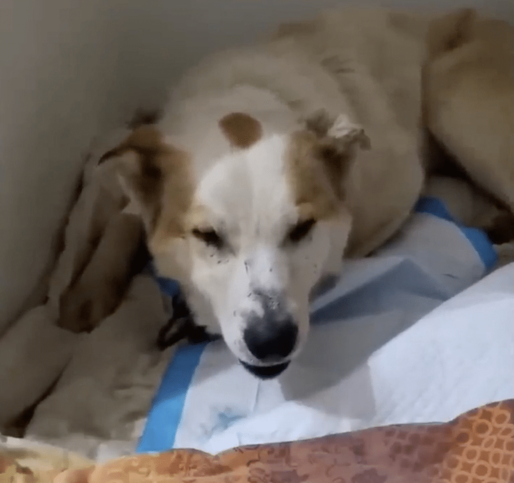 That first night, he rested on a warm blanket—something he likely hadn’t known in a long time. Sleep came slowly, interrupted by shifting and quiet breaths, but as the hours passed, his body began to relax. Whenever someone moved nearby, he leaned closer, drawn to the comfort of human presence.