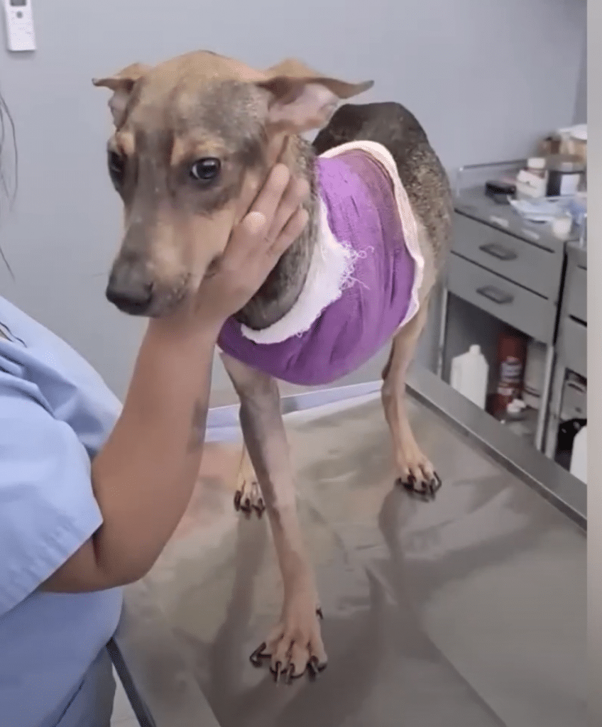 At the veterinary clinic, the full picture became clear. Hero was severely underweight. His blood levels were dangerously low, and his leg injury was far more serious than it appeared on the surface. Yet through every examination, Hero remained calm. He rested quietly, accepting care with a patience that touched everyone around him.