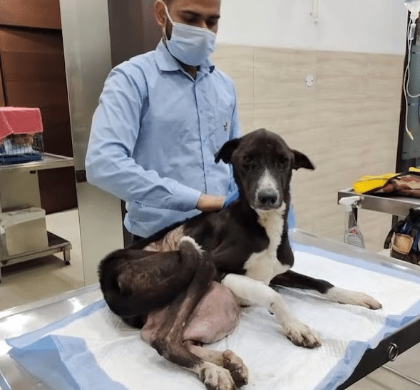 The most alarming discovery was the massive tumor weighing him down. Surgery was necessary—but not yet possible. In his condition, even a small procedure could be fatal. The veterinary team made the careful decision to stabilize him first. Midnight received fluids, medication, nutrition, and constant monitoring. Every small sign of progress mattered. When he lifted his head. When he accepted food. When his eyes showed a faint spark of awareness.
