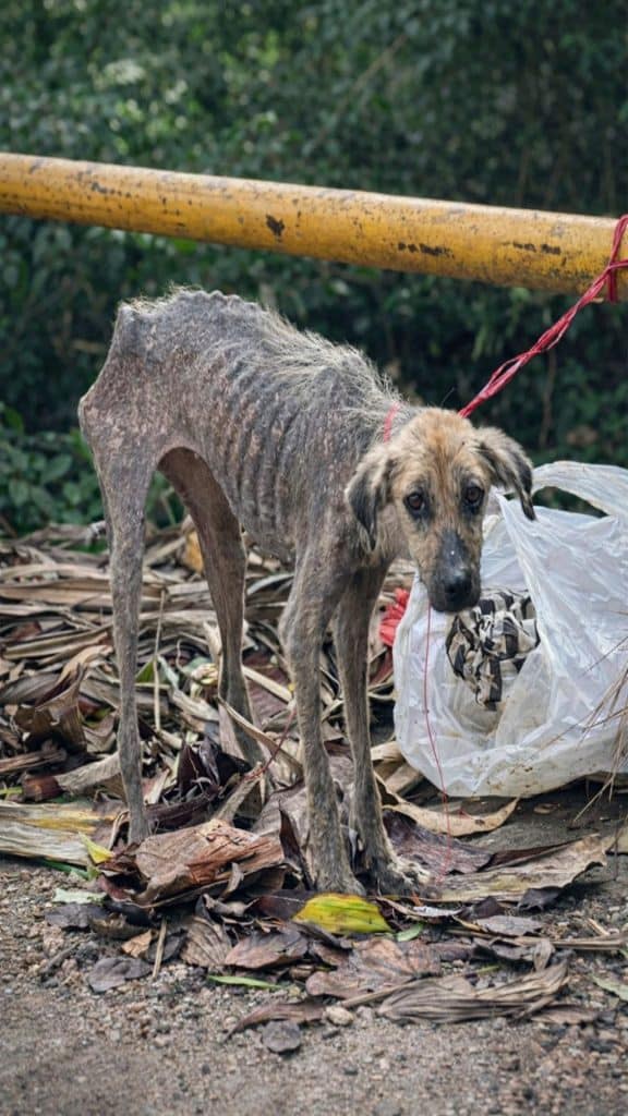 Tied and abandoned, Lisa waited without shelter, without food, and without understanding why she had been left there. She was barely a year old, yet her frail body already showed the toll of prolonged neglect. Each passing day weakened her further, unnoticed by the steady flow of people crossing the bridge.