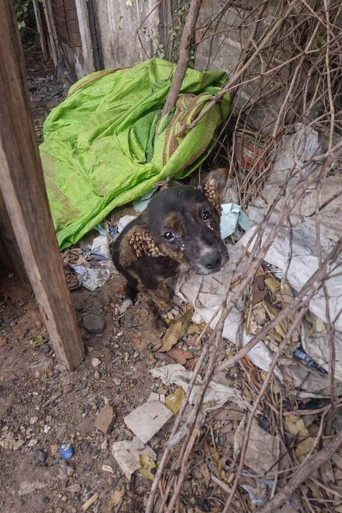Chito entered the world without comfort or protection. When he was first discovered, the tiny puppy was completely alone—small, fragile, and trembling in a place that offered no safety. There was no warm bed, no familiar voice, and no sign that help would come. His body carried the weight of neglect far beyond what any young life should endure.