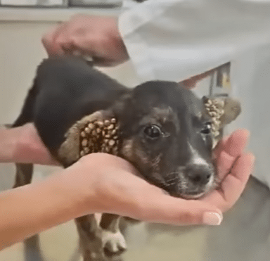 A closer look revealed how serious his condition was. Chito’s movements were slow and uncertain, his energy nearly gone. His ears, neck, and skin were overwhelmed by ticks that had drained his strength day after day. Severe anemia had left his gums pale and his breathing shallow. Yet Chito did not cry or struggle. His wide eyes held only fear and a quiet plea, as if he no longer believed anyone would notice.
