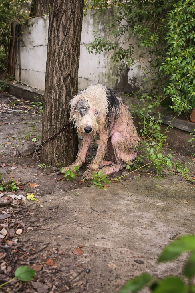 Milo’s story began on a cold, rain-soaked night when the world seemed determined to forget him. Chained outside with no shelter, no warmth, and no comfort, he stood alone beneath a heavy sky. He hadn’t done anything wrong. He had only cried out, the way dogs do, searching for connection and reassurance.
