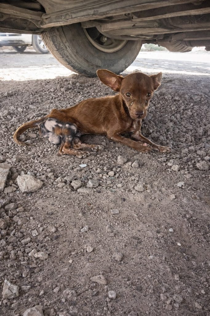 Miguel’s body told a painful story. His ribs and spine pressed visibly beneath stretched skin. His fur was thin and patchy, offering little protection. One tiny toe was missing, turning each step into an effort. The trembling that ran through him was not only from hunger or cold—it was fear shaped by months of uncertainty. Still, his eyes held a faint steadiness, the sign of a soul that had endured but not surrendered.