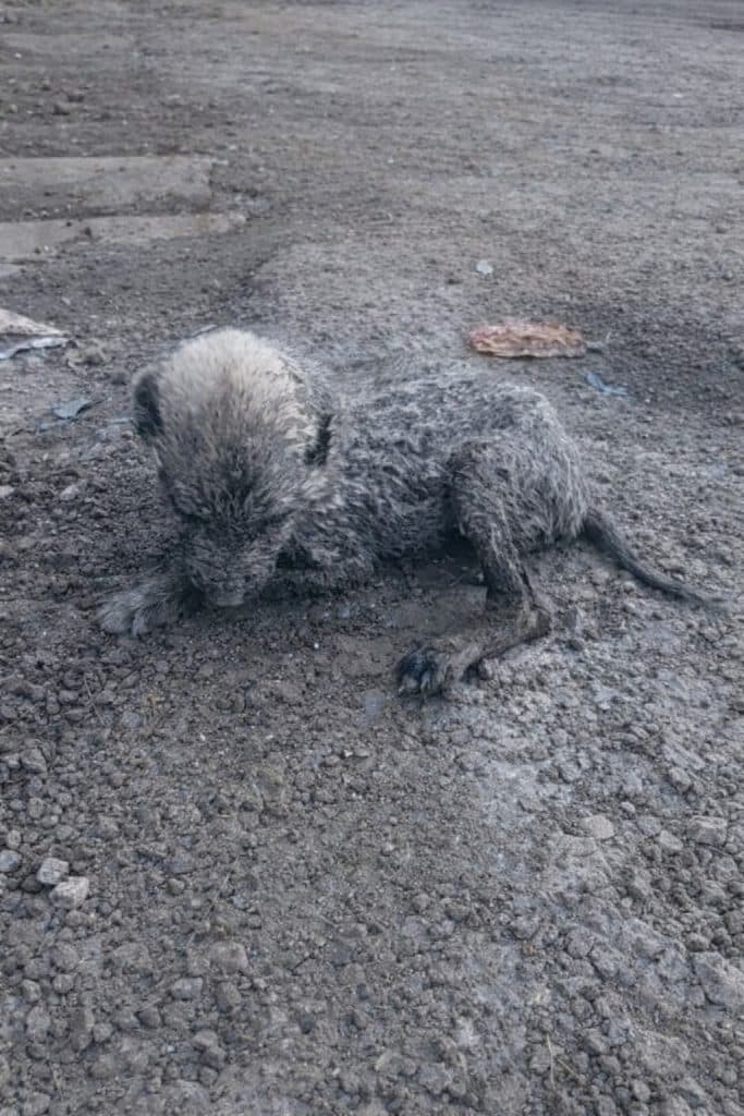Rosie didn’t pause to wonder what to do. He lifted Lola gently from the ditch and immediately felt how light she was in his arms. Her fur was matted, her body tense, and her eyes reflected both fear and quiet surrender. It was clear she hadn’t eaten properly in a long time. This was not something that could wait.