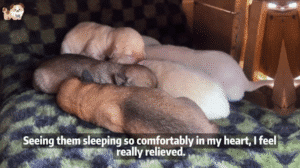 They were brought to a safe home, where warmth replaced exposure and uncertainty gave way to calm. Soft blankets, clean water, and nourishing food awaited them. For the first time since giving birth, the mother ate without fear. As she lay beside her puppies, her tense body slowly relaxed—not to guard against danger, but to rest.