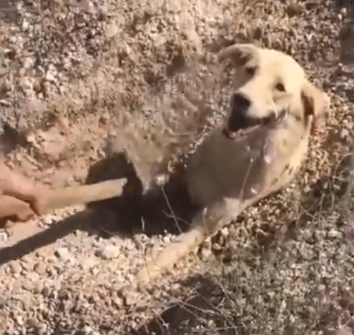 The veterinarian adjusted his approach, digging faster but with precise control. Each scoop of dirt brought the cries into clearer focus. After freeing the mother dog enough for her to breathe and move more comfortably, he continued toward the source of the sounds.