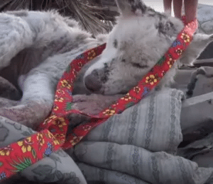 The team moved slowly, offering food and speaking softly. Miley tried to eat, but even a few bites were too much for her weakened body. She allowed a leash to be placed around her neck without protest, as if she no longer had the energy to fear what might come next.