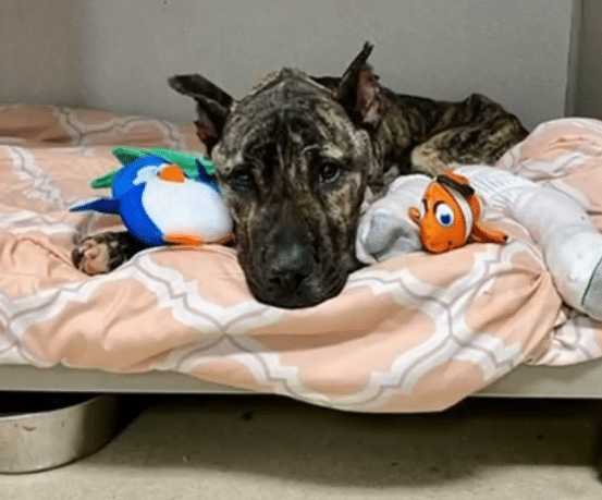 A kindhearted passerby noticed him while stopping to donate supplies. Instead of walking away, they acted. A call was made. Help arrived. Within minutes, a rescue team carefully lifted the fragile dog and rushed him to veterinary care.