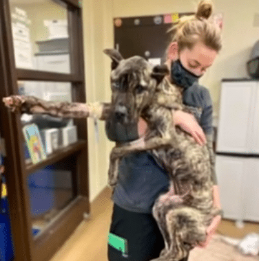At just 38 pounds, Ethan was dangerously underweight. Every rib and bone along his spine and hips was visible beneath dirty, matted fur. Hunger, dehydration, and exposure had taken a heavy toll. Still, the team believed that with patience and steady care, he had a chance.